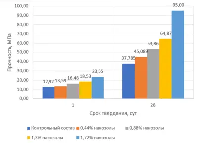 Кубань на 75% обеспечивает Россию рисом. Неудивительно, что до 600 тыс. тонн рисовой соломы ежегодно остается на чеках. Как-то ее утилизируют, часто просто – выжигают. Между тем, правильно обожженная солома представляет собой кладезь аморфного кремнезема, небесполезного, как известно, для цементных систем. Фото термообработанной золы рисовой соломы и ее элементный анализ по данным энергодисперсионного анализа приведены на рис.1 Рисунок 1 Пробу сухой золы обработали в ультразвуковом диспергаторе при частоте 30 кГц (иностранные коллеги чаще используют термин «сонохимическая обработка», подробней об этом писал в ТГ здесь). Не вдаваясь в детали режима обработки (длительность и мощность), нами было получено, по сути, два продукта, потенциально полезные для бетона на основе портландцемента: 1– водный коллоидный раствор, содержащий, в том числе, наноразмерный кремнезем; 2 - осадок, который после высушивания явил собой микропорошок с удельной поверхность 20568 см2/г (рис. 2). Скорость седиментации коллоидного раствора, как и микрофотографии, подтвердили присутствие частиц до 30 нм. Фотография приведена на рис. 3. Рисунок 2 Рисунок 3 Недостатком используемой нами электронной микроскопии является необходимость высушивать материал перед съемкой. Операция высушивания, т.е. переход материала из состояния стабильного водного раствора в сухой порошок сопровождается, естественно, агломерацией частиц. Несмотря на это, на фото различимы отдельные частицы менее 100 нм. Полученный коллоидный раствор, который мы называем здесь нанобиокремнеземом (далее НБК), затем вводился в цементно-водную смесь. Цемент CEM III/42.5. Водоцементное отношение принималось постоянным для всех составов В/Ц=0,35. При расчете количества воды затворения учитывалась вода раствора НБК. Дозировки НБК по сухому веществу от массы цемента принимались следующими: 0,44; 0,88; 1,3 и 1,7%. Прочностные характеристики сравнивались с контрольным составом без добавки. Прочность определялась в возрасте 1 и 28 суток нормального твердения. Результаты влияния полученного НБК на прочность при сжатии приведены на рис. 4. Рисунок 4 Выводы: Очевидно, влияние на прочность положительная. Примечательно, что не только в раннем возрасте (24 часа), но и в проектном возрасте (28 суток) имеем весьма значительный прирост в зависимости от дозировки. Так, в раннем возрасте прирост прочности составил от 5 до 92%, в проектном возрасте – от 19 до 157%. Прирост прочности цементного камня более чем в 2,5 раза представляется весьма существенным и требует подтверждения в бетоне. Тем не менее, очевидно, что направление перспективное. Связаться с автором: udodov-tec@mail.ru |
